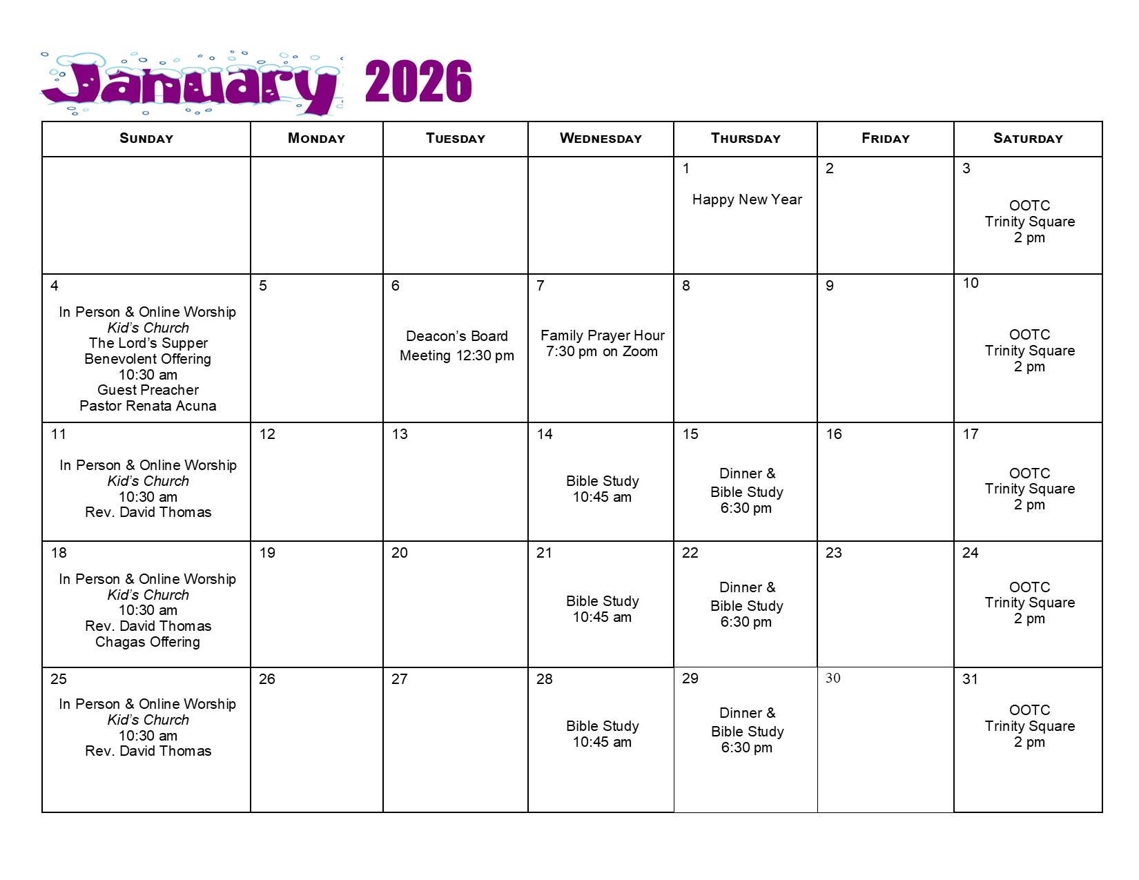 Blythwood's Sunday Schedule and Calendars