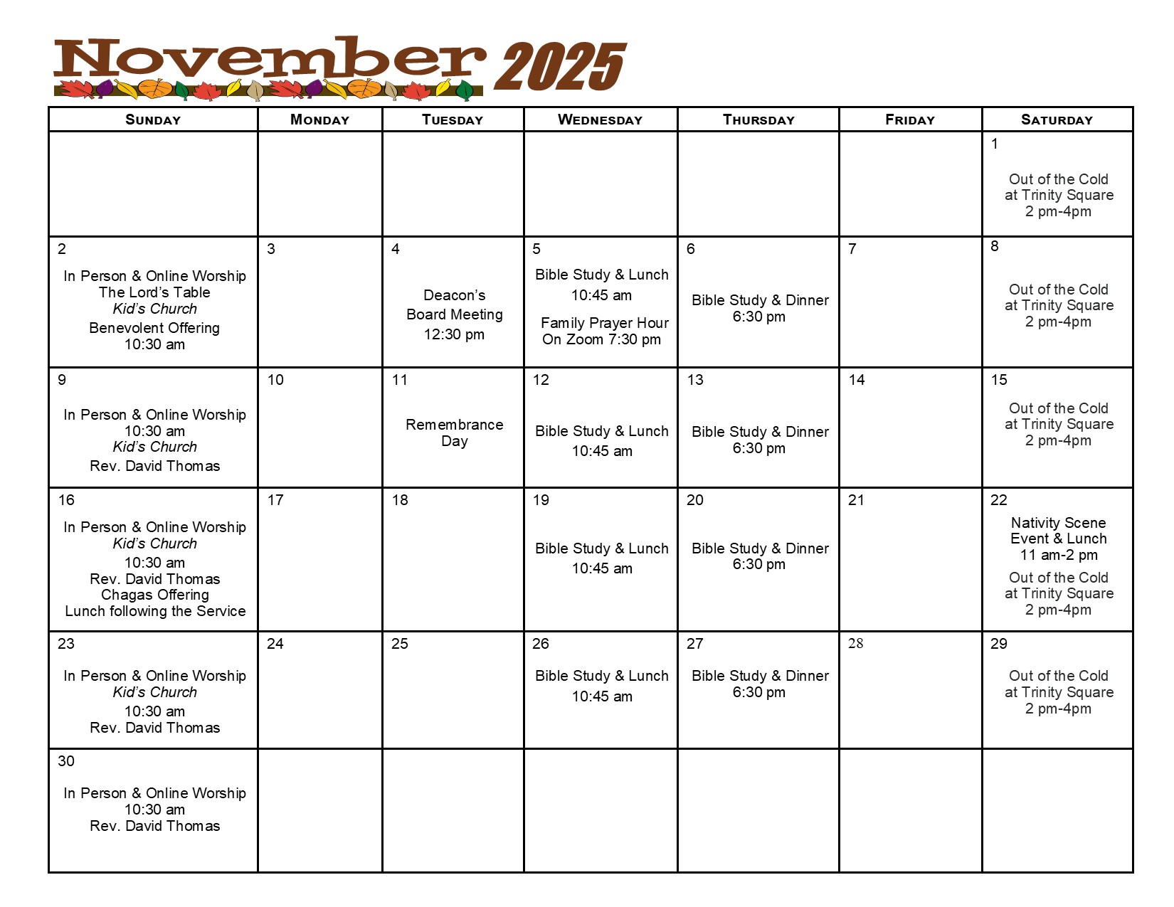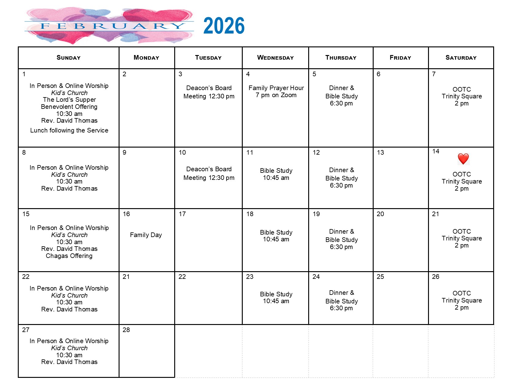 Blythwood's Sunday Schedule and Calendars
