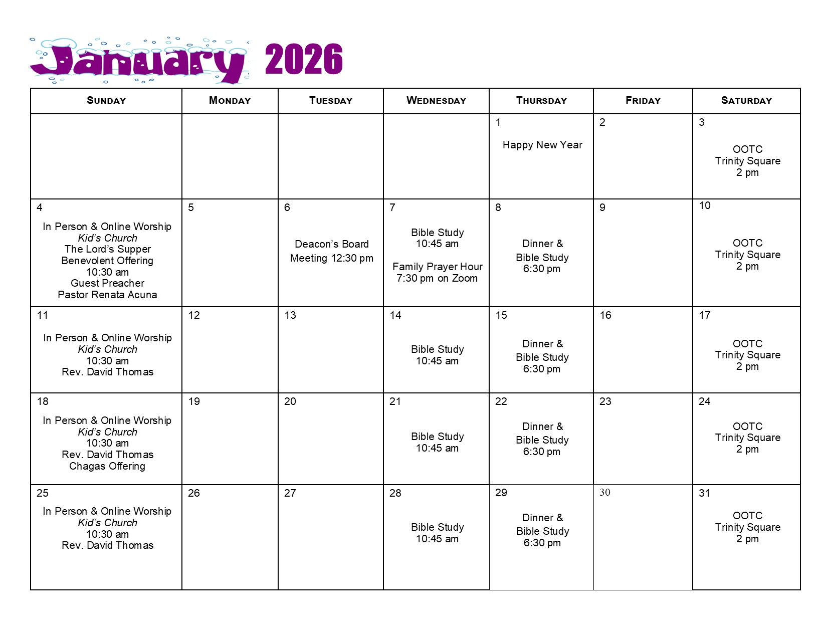 Blythwood's Sunday Schedule and Calendars